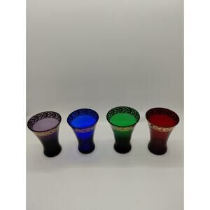 Set of 4 Pier One - Victorian 3" Gold Trim Multicolor Glass Shot Glasses
