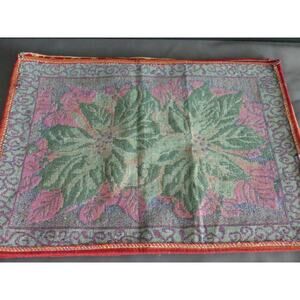 Set of 4 Poinsettia Christmas Placemats Woven Red Gold Trim Table Holiday Decor