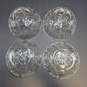Crystal clear 5-1/4 inch bowls with intricate floral poinsettia design.