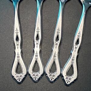 Set of 4 ROGERS VTG. Autumn Ballad (Stainless) Oval Soup Teaspoons KOREA
