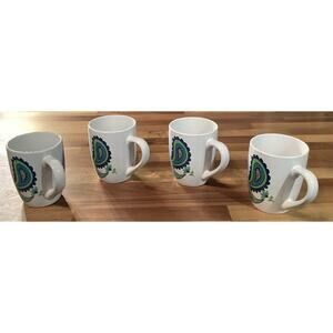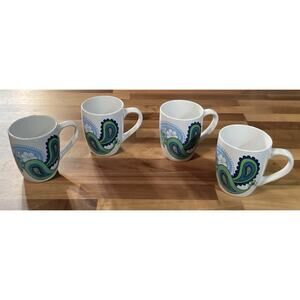 Set of 4 Royal Norfolk Floral Paisley Print Blue & Green Ceramic Coffee Mugs
