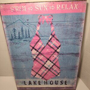 Bring cozy lakeside charm to your home with this set of four coordinated wall signs. Each plaque measures approximately 16″ x 12″ and features a distressed, rustic look with lake/beach-themed artwork and phrases (example: “Swim → Sun → Relax” / “Lake House”). They are similar in style — different designs within the same collection — perfect for grouping on a wall, in a bathroom, entryway, cabin, or vacation home.