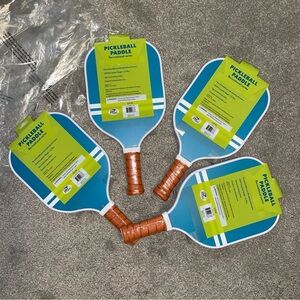 Set of 4 Sakar Adults Pickleball Paddle Mint Gingham/Blue Stripe Double Sided