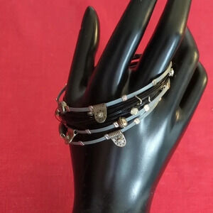 The fourth bracelet is multiple black strands with 6 crystals on different strands.