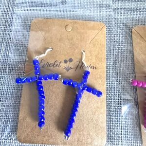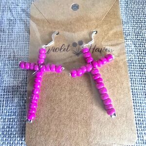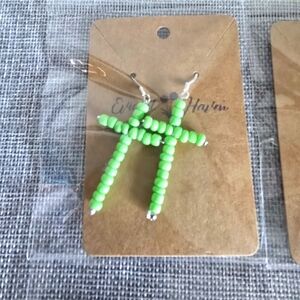 Set of 4 Seed Bead Cross Earrings Bluish Purple, Pink, Lime Green, Orange