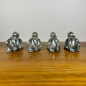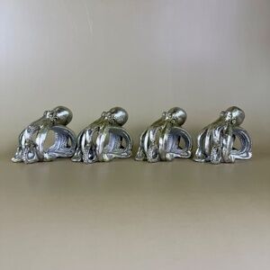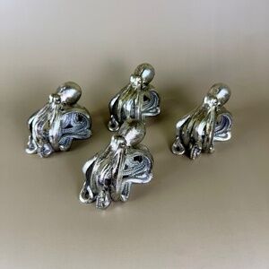 Set of 4 Silver Octopus Napkin Rings | Coastal Resin Sculpted Design | Nautical