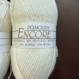 Set of 4 Skeins of Plymouth Encore Knitting Worsted Weight Yarn Off White