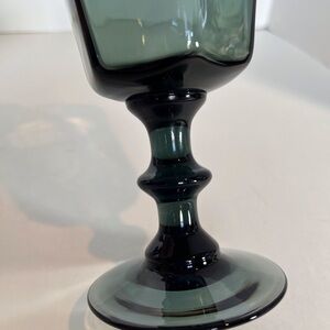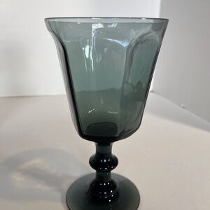 Glass Goblets in a Smokey Gray-Blue Color. H 6.75in x Rim Diameter 3.75in Contains 12ounces. Very Good condition, no chips or cracks.