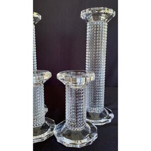 This set of 4 crystal candlestick holders is truly one of the most unique and beautiful sets I have come across. With a textured diamond point base, they reflect light beautifully, creating a mesmerizing glow. The majestic design and substantial weight of each piece give these holders a sense of elegance and sophistication. If you’re looking for something stunning and contemporary, these holders are the perfect addition to your formal dining table or modern decor.