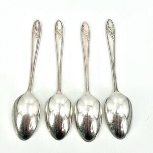 Set of 4 Teaspoons Queen Bess II Silverplate Tudor Plate Oneida Community