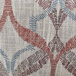 Set of 4 Lazy Boy throw pillows in a multicolored geometric pattern. Each 20 x 20 in pillow comes in tan, rust, blue, maroon, or grey and features a removable synthetic cover.