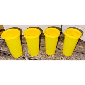 Set of 4 Tupperware Sheer Sunflower Yellow Stacking Tumbler 9 Oz with Lids