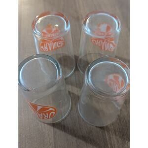 VINTAGE 1970s ARC International Luminaric Conique Juice Glasses (4) 7oz + 2 qt carafe Groovy That 70s Show Tang kitchen dining room housewares replacement glasses bright cheerful good morning