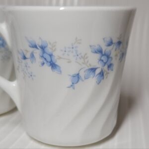 Set of 4 VINTAGE Corelle Blue Fleur coffee mugs by Corning (READ)