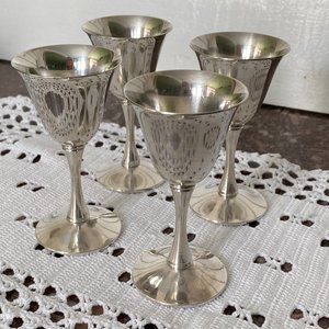 Set of 4 Valero Silver Plated Stemware, Cordial Cups, Made in Spain