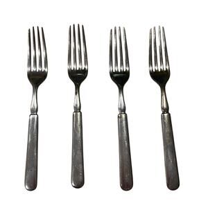Set of 4 vintage 1847 Rogers Bros Faneuil pattern silverplate forks, crafted by the Meriden Silver Company. These elegant forks feature a timeless colonial-style design with clean, classic lines — perfect for adding vintage charm to your flatware collection or for replacement purposes.
