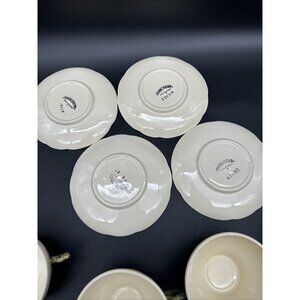 This set of 4 vintage 1950s/60s Franciscan Desert Rose teacups and saucers is a charming addition to any tea lover's collection. Originating from California, these round, multicolor cups with saucers feature a decorative Desert Rose pattern, perfect for all occasions. Made from porcelain, bone china, and ceramic, this four-piece set embodies a contemporary style with a nostalgic touch from the 1950s. The production technique of earthenware and pottery adds to the unique charm of these original Franciscan teacups and saucers.