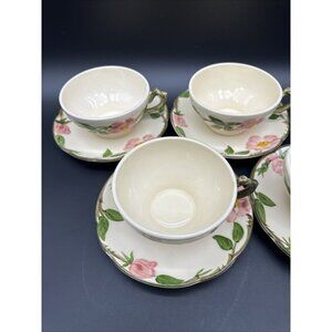 Set of 4 Vintage 1950s 60s Franciscan Desert Rose Teacups & Saucers Mugs Tea EUC