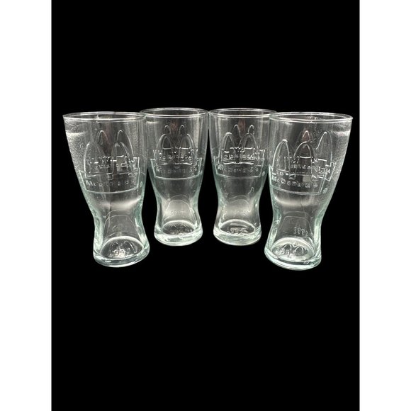 Relive the nostalgia with this set of 4 vintage 1992 McDonalds clear 16 ounce soda collectors glasses. Perfect for collectors or aficionados of retro memorabilia.