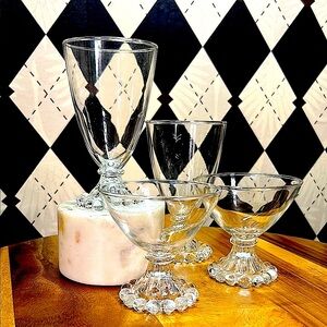 Anchor Hocking, Boopie glasses, Berwick pattern, vintage glassware, retro drinkware, mid-century barware, hobnail glass, 1950s glass set, clear vintage glasses, MCM glassware, collectible glass, vintage cocktail glasses, vintage cordials, playful stemware, retro dining, graduated height glasses, bar cart decor, nostalgic glassware, clear hobnail glass, vintage Anchor Hocking, glassware for collectors, kitschy kitchen, boho barware, atomic age style, glass goblet set, soda fountain style, fun vintage gift