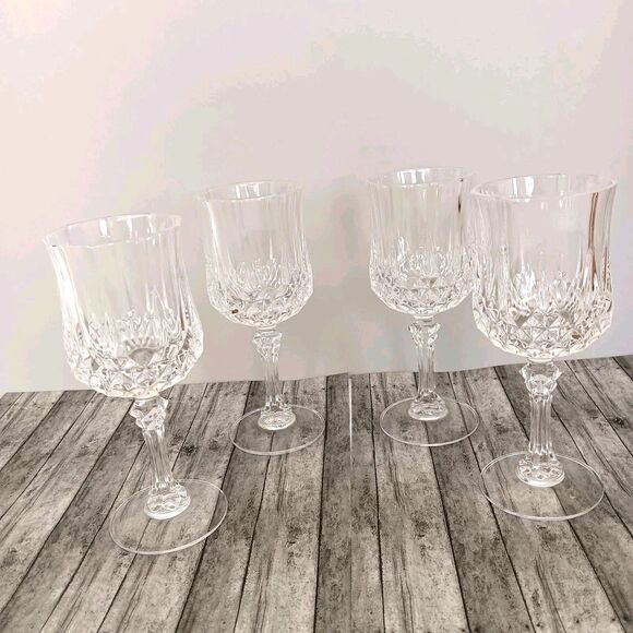 Set of 4 Vintage Cristal D'Arques-Durand Longchamp Crystal Wine Glasses