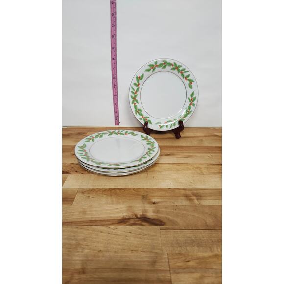 Set of 4 Vintage Crown Ming Fine China Holly Salad Plates