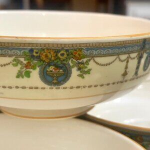 Lovely Fondeville "Ambassador Ware" Set of 4 Vintage Double Handled Floral Cream Soup Bowls with gold trim. The Bowls are floral decorated with pretty multi color flowers and a roped border finished with gold trim.