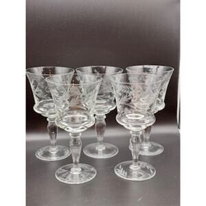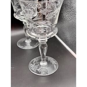 Set of 4 Vintage Etched Crystal Wine Glasses Elegant Stemware Cocktail READ