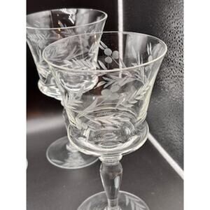 Elevate your glassware collection with this set of 4 vintage etched crystal wine glasses. These elegant stemware pieces are perfect for serving wine or cocktails at your next gathering. The clear etched glass design adds a touch of sophistication to any table setting.