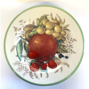 STUNNING Vintage Florentine Fruit Plates "Golden Fruits" made in Italy. 8" size. Glossy Decorative Ceramic Plates with Varied Fruits. (FYI-Due to possible lead in these plates, they should be used for Decorative purposes in my opinion. Very common for lead to be in paint back then.) NO chips or cracks. Each plate has some crazing, normal for age. See last 4 pics. Stand included with order.