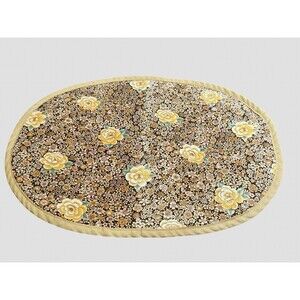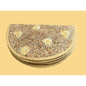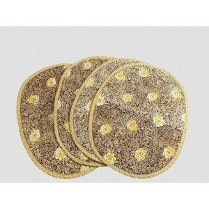 Set of 4 Vintage Handmade Placemats MCM 1960s Brown & Yellow Floral Roses