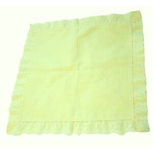 Set of 4 Vintage Lace Trim Linen Cloth Napkins Pale Yellow 16" Square