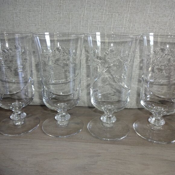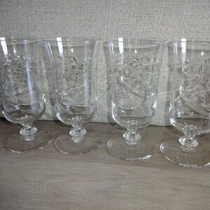 Set of 4 Vintage Libbey Rock Sharpe ? Etched Iced Tea Water Glasses Flowers