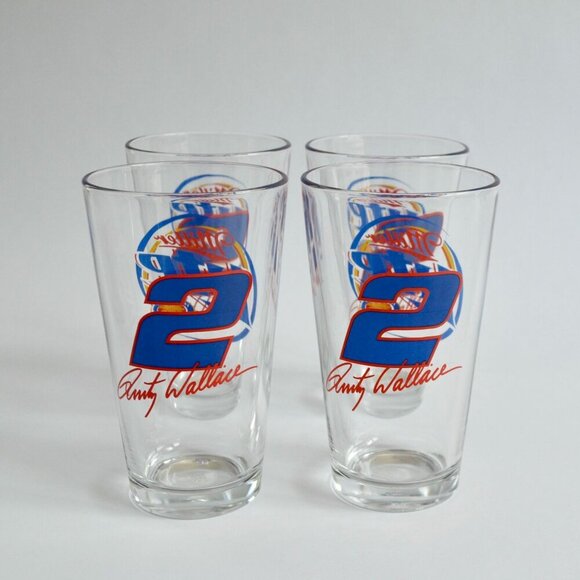 Set of 4 Vintage Miller Lite Rusty Wallace #2 Beer Glasses NASCAR Auto Racing