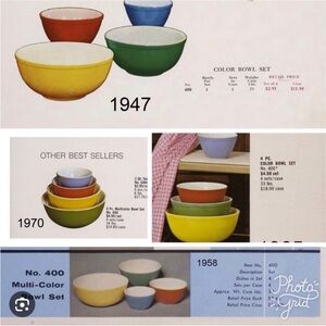 Set of 4 primary colored Vintage Pyrex mixing bowls