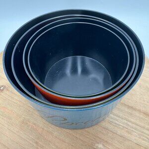 This set of 4 vintage Nasco nesting snack bowls is perfect for serving popcorn, chips, pretzels, and nuts. Made of durable melamine, they come with one lid for easy storage and transport. Add a touch of retro charm to your gatherings.