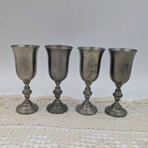 Set of 4 Vintage Oneida "Heirloom" Pewter Stemmed Cordial Cups / Shot "Glasses"