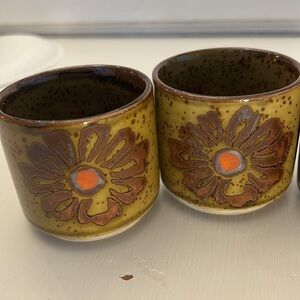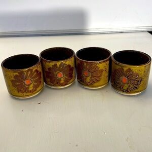 Here is a Set of 4 Vintage Otagiri Teacups Ceramic Speckled with a Flower on each side in EUC approximately 2.5” tall hold 4-5 ounces