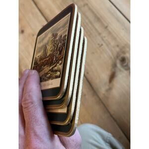 Set of 4 Vintage Pimpernel Corked Back Coasters. American West. Coach. English