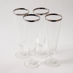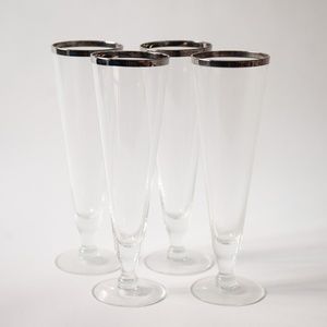 Set of 4 Vintage Platinum Silver Rim Pilsner Glasses