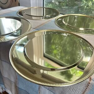 Set of 4 Vintage Royal Silver Brass Charger Plates – 11.5” Decorative Dinner Set