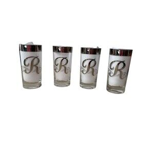 Vintage Monogram R Highball Glasses Set of 4 with Silver Rim