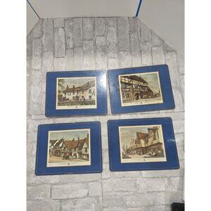 Set of 4 Vtg Blue Pimpernel Placemats Old English Inns Cork Backs 9" x 12"