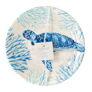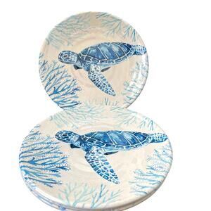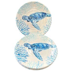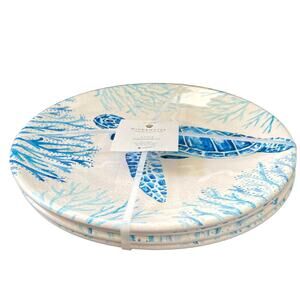 Set of 4 WIND & WATER Coastal Blue Sea Turtle Melamine 11" Diner Plates NEW