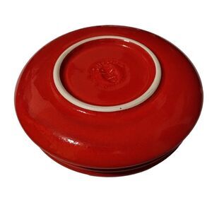 Set of 4 Vintage DISCONTINUED Waechtersbach Germany (stamped) 6 Inch RED HEART Earthenware Saucer Plates for Coffee or Tea (flat bottom or midsize demitasse cups). The inner cup ring is 2.5 inches with no chips. Up close plates sort of have a speckled look. Very nice, brightly colored and perfect for the holiday table.
