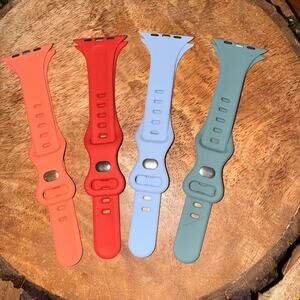 Set of 4 Watch Bands Apple Compatible 42/44/45 Orange Red Light Blue Seafoam