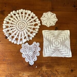 Set of 4 Westwater Enterprises Crochet Doily White Round Square Heart Shape