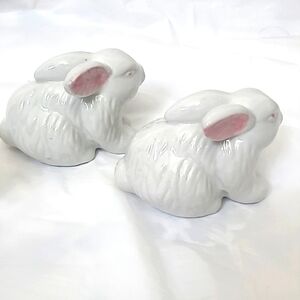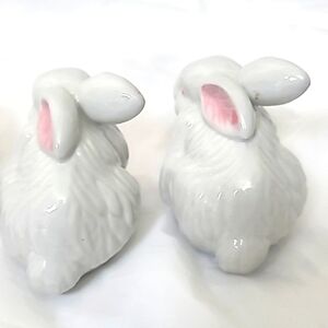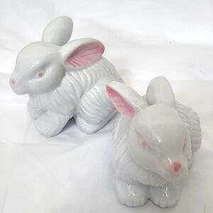 Set of 4 White Bunny Rabbits Pink eyes, ears, nose 3" H x 3" W Vintage Ceramic