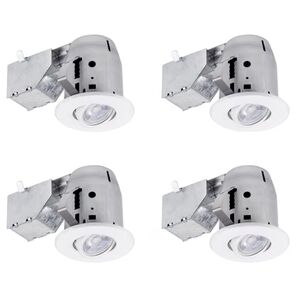 GLOBE Electric 90718 3" LED IC Rated Swivel Round Trim Recessed Lighting Kit 4-Pack, White Finish, Easy Install Push-N-Click Clips, Bulbs Included, 3.25" Hole Size, 400 Lumen