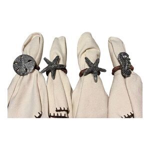 Set of 4 Williams Sonoma Cotton Napkins Beach Themed Rings Starfish Seahorse